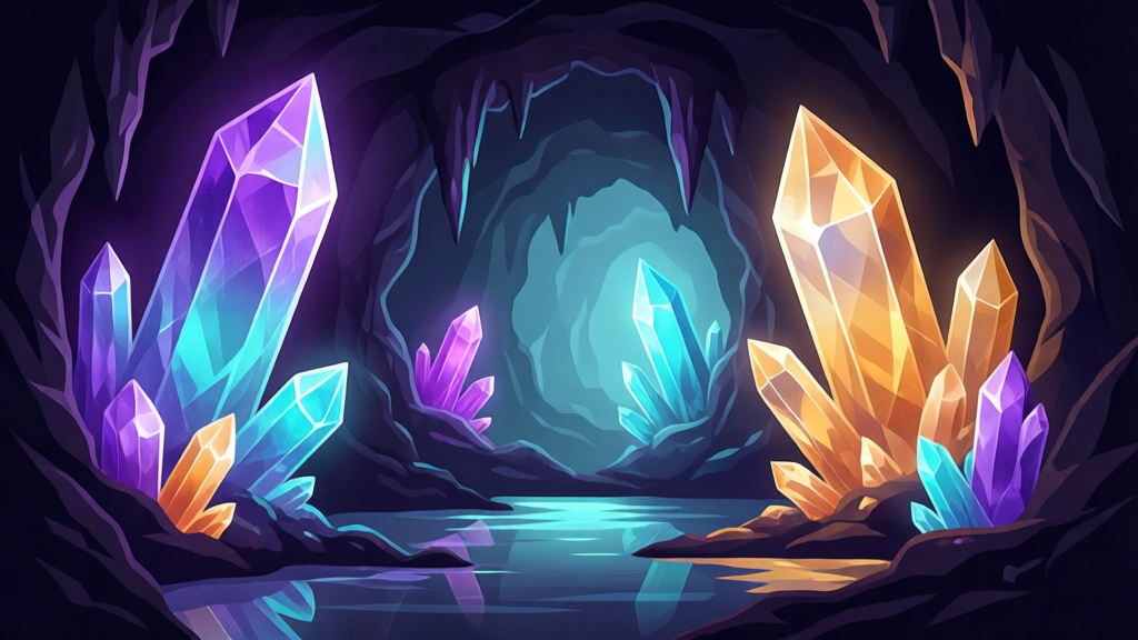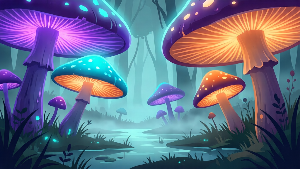 As the Guhs multiplied, the universe shaped itself around them. The Mystic Meadow rose from gentle hums. The Crystal Caverns formed where echoes bounced between Guhs. The Neon Abyss opened where colours were too bright for the surface world. Each habitat attracted Guhs of certain temperaments — though no Guh truly understands why it ended up where it did.